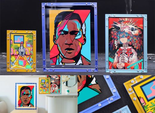 Play with color and texture. Pair our NeonEdge/ombre acrylic frames with classic wood profiles to energize desks, studios, and reading corners.