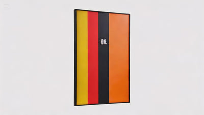 Make a graphic focal wall. Clean lines, bold prints, and a tidy grid using slim aluminum and straight‑angle wood frames keep everything sharp and intentional.