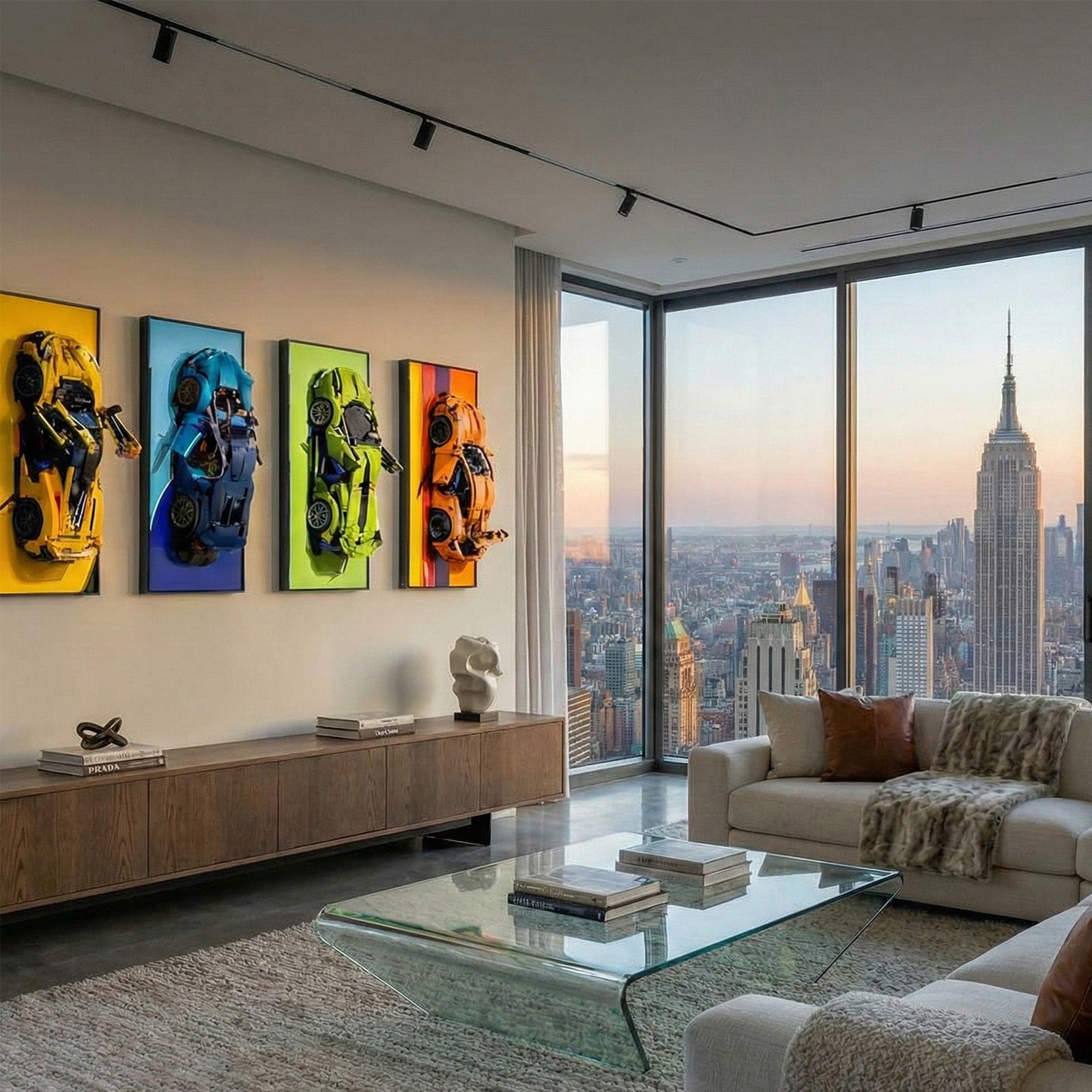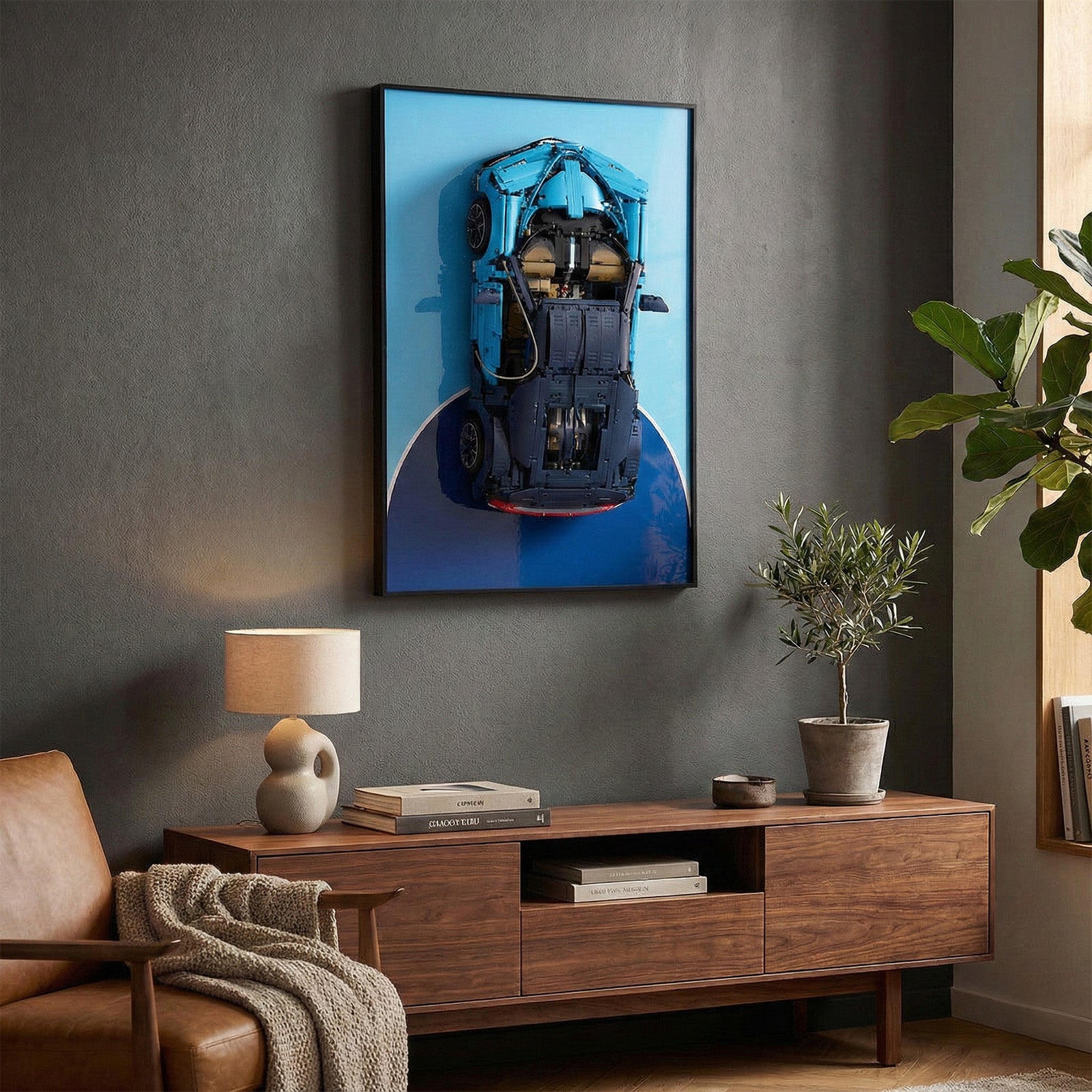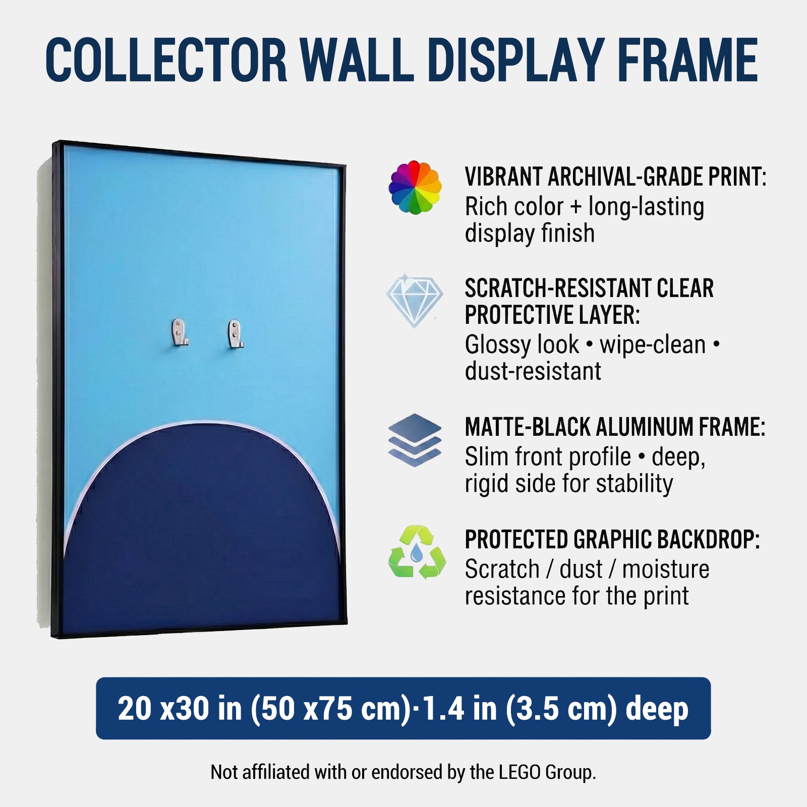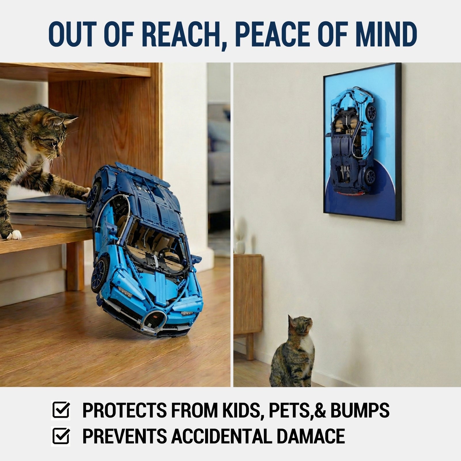 Display frame + car mounting components + wall-mount hardware + instructions.(LEGOmodel not included.)
