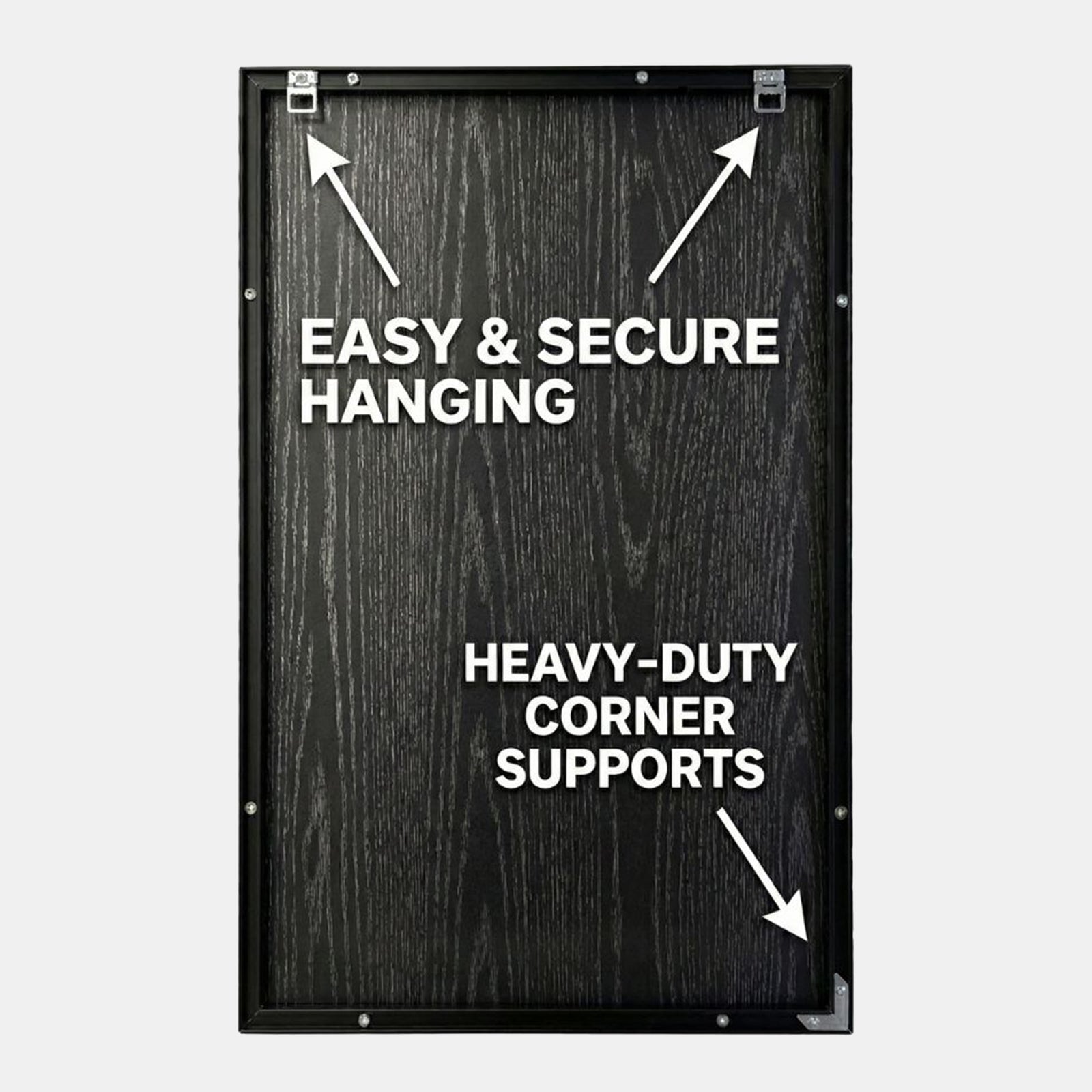 Yes — the structure is built for display stability, using a rigid backboard and a thicker frame design to reduce flex and wobble once mounted.