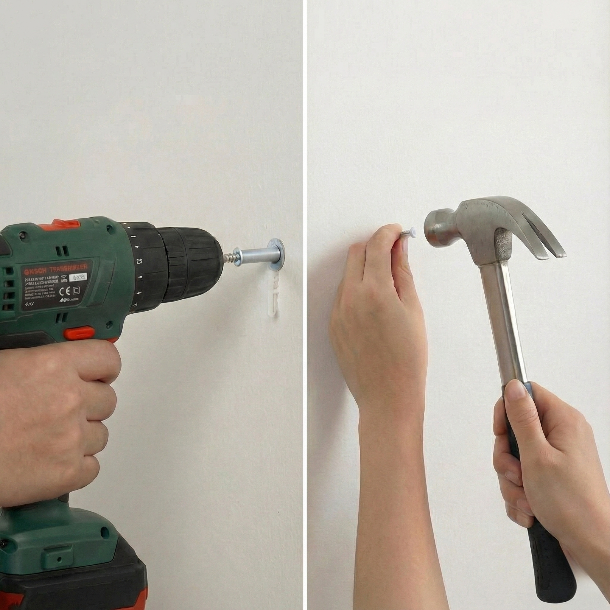 Installation is straightforward. Our frame includes pre-drilled holes forthe hook hardware (saves the time to measure and drill into the frame), and other wall mounting tools so you can mount everything quickly and accurately.