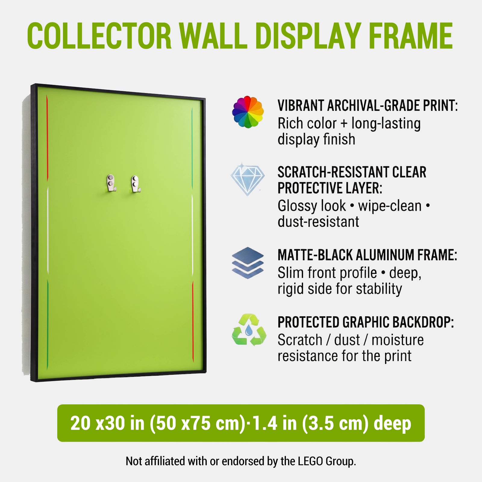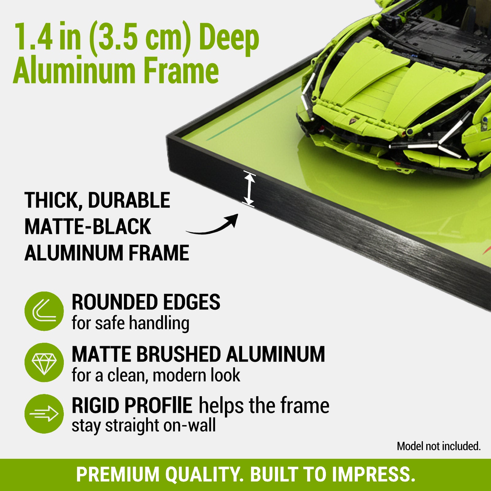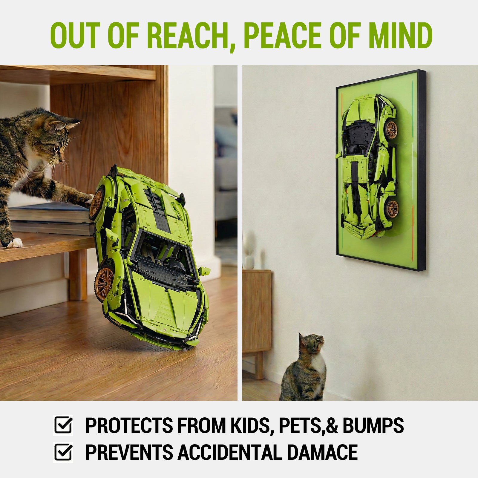 Display frame + car mounting components + wall-mount hardware + instructions.(LEGOmodel not included.)