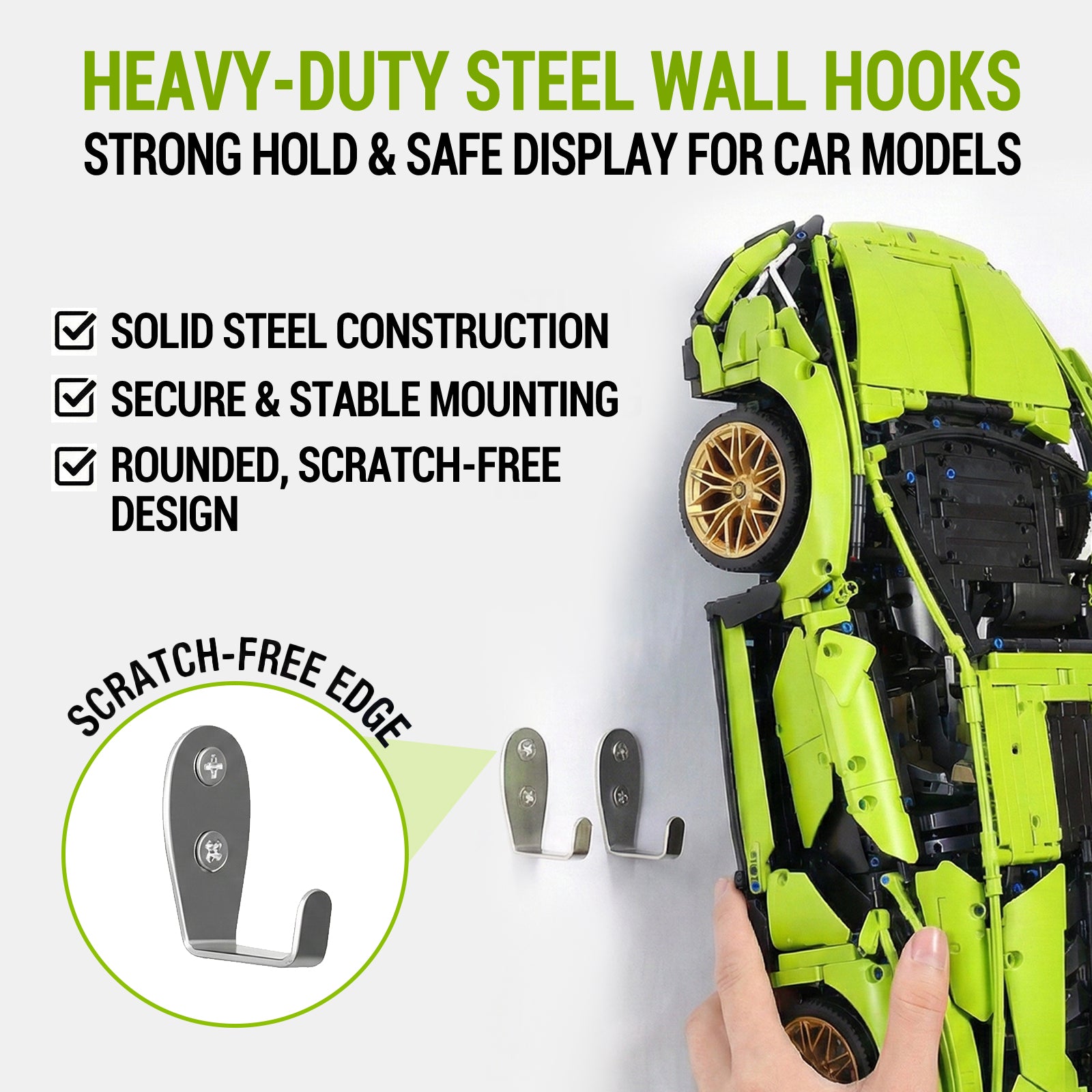 Our innovative "Hidden Hook" design ensures your car model is securely mounted. This system attaches directly to the chassis, protecting delicate elements from stress and distributing weight evenly for a safe and stable display.