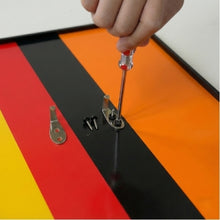 Installation is straightforward. Our frame includes pre-drilled holes forthe hook hardware (saves the time to measure and drill into the frame), and other wall mounting tools so you can mount everything quickly and accurately.
